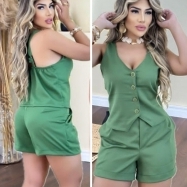 COD 5375 CONJUNTO COLETE E SHORT CREPE VERDE TAM G