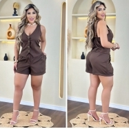COD 5376 CONJUNTO COLETE E SHORT CREPE MARROM TAM G