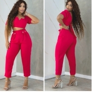 COD 4983 CONJUNTO CALÇA E CROPED NA COR FUCSIA TAM G