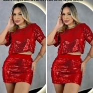COD 5020 CONJUNTO 03 PEÇAS MALHA PAETES VESTE 38 AO 42 VERMELHO