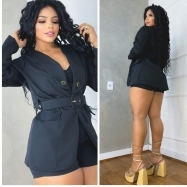 COD 5063 CONJUNTO BLAZER SHORT E CINTO PRETO TAM M