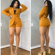 COD 5064 CONJUNTO BLAZER SHORT E CINTO MOSTARDA TAM M