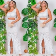 COD 3896 CONJUNTO SAIA E CROPED SEREIA VESTE 36 À 40 BRANCO