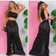 COD 4177 CONJUNTO SAIA LONGA E CROPED FLORAL VESTE 36 À 42