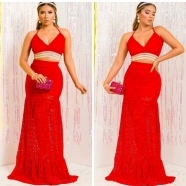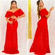 COD 3902 CONJUNTO SHORT SAIA E CROPED VERMELHO VESTE 40 À 42