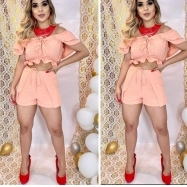 COD 4507 CONJUNTO SHORT E CROPED SALMÃO VESTE 40/42