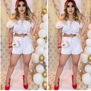COD 3901 CONJUNTO SHORT SAIA E CROPED BRANCO VESTE 40 À 42