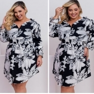 COD 5298 CHAMISE COM CINTO CREPE VESTE 48 A0 52 FLORAL BRANCO E PRETO
