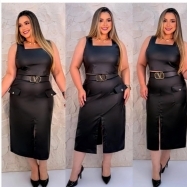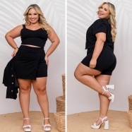 COD 5371 CONJUNTO 03 PEÇAS PRETO PLUS SIZE VESTE 48 AO 52