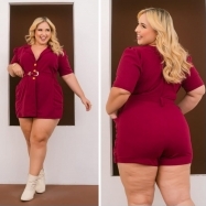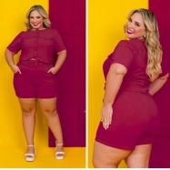 COD 5428 CONJUNTO SHORT BLUSA CINCO BOTÕES E BOLSOS MALHA SCULBA VINHO VESTE 50 AO 52
