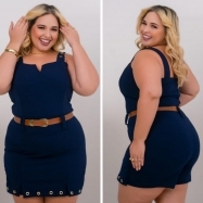 COD 5301 CHAMISE COM CINTO CREPE PLUS SIZE VESTE 48 A0 52 AZUL BIC
