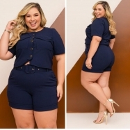 COD 5429 CONJUNTO SHORT BLUSA CINCO BOTÕES E BOLSOS MALHA SCULBA MARINHO VESTE 50 AO 52