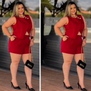 COD 5488 CONJUNTO CROPED E BERMUDA TECIDO ALFAIATARIA VINHO VESTE 46 E 48