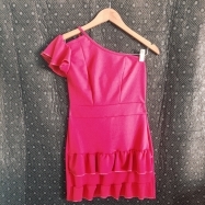 COD 0334 VESTIDO TUBINHO MALHA GROSSA PINK OMBRO UNICO TAM M