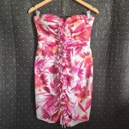COD 0335 VESTIDO TOMARA QUE CAIA CREPE FLORAL COM BOJO DETALHE BOHO NA FRENTE TAM P