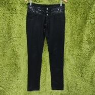 COD 0346 CALÇA EM SARJA PRETA COM LYCRA E PAETES PRETOS TAM 38