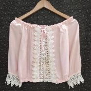 COD 0582 BLUSA OMBRO A OMBRO EM VISCOSE ROSE COM APLICAÇÃO EM GRIPY TAM M