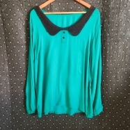 COD 0585 BLUSA EM VISCOSE VERDE GOLA PRETA GRIPY TAM G