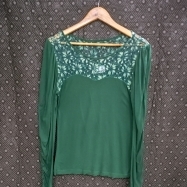 COD 0566 BLUSA MALHA LISA VERDE E TULE PRETO NAS COSTAS TAM P