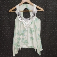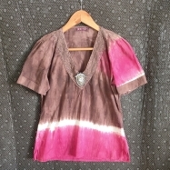 COD 0560 BLUSA EM TECIDO DE ALGODÃO TYE DYE COM RENDA E APLICAÇÃO TAM P