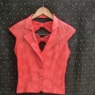 COD 0552 BLUSA COLETE EM TECIDO COM RENDA DETALHES NAS COSTAS TAM P