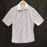COD 0559 CAMISA FEMININA EM TECIDO DE ALGODÃO NUDE COM LISTRAS AZUL CLARO TAM G