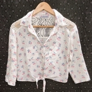 COD 0562 BLUSA CROPED EM TECIDO DE ALGODÃO FLORAL COM APLICAÇÃO EM MALHA TAM P