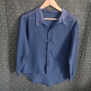 COD 0564 BLUSA FEMININA EM ORGANZA AZUL MARINHO COLARINHO EM MALHA TAM M