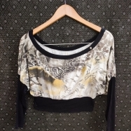 COD 0567 CROPED MANGAS LONGAS EM MALHA PRINT E PRETOS TAM M