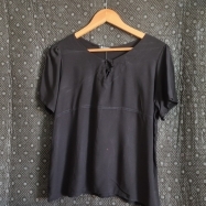 COD 0568 BLUSA EM VISCOSE PRETA COM ABERTURA E AMARRAÇÕES TAM M