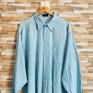 COD 0719 CAMISA SOCIAL ALGODÃO AZUL COM LISTRAS TAM 08