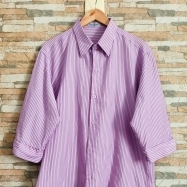 COD 0720 CAMISA SOCIAL MANGAS 3/4 MICROFIBRA LILAS COM LISTRAS FINAS PRETAS TAM G4