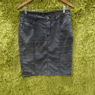COD 0143 SAIA LAPIZ JEANS COM LYCRA CINZA BOLSOS E ABERTURA DISCRETA TAM 42