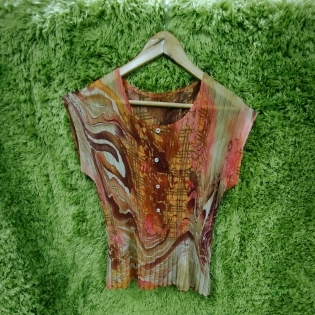 COD 0206 BLUSA EM CREPE PLISSADO COM ESTAMPAS TAM M