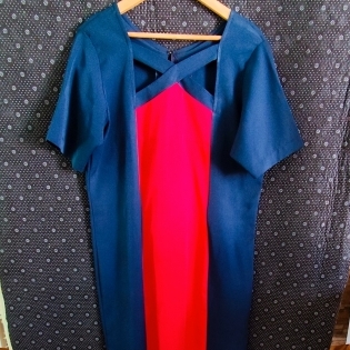 COD 0222 VESTIDO SOCIAL EM OXIFORD AZUL MARINHO COM VERMELHO ZIPER NAS COSTAS TAM G
