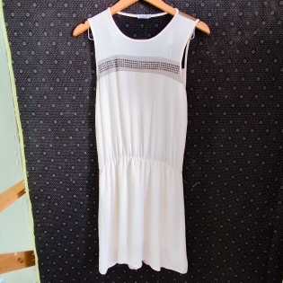 COD 0683 VESTIDO EM CREPE QUADRICULADO COM DETALHES BRILHO E ZIPER NAS COSTAS TAM M
