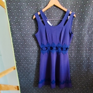 COD 0234 VESTIDO RODADO MALHA AZUL MARINHO ZIPER NAS COSTAS TAM M