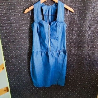 COD 0250 VESTIDO JEANS SEM LYCRA ZIPER E ELASTICO NAS COSTAS TAM P