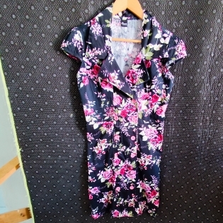 COD 0252 VESTIDO ALGODÃO ACETINADO FLORAL ABERTURA NA FRENTE NE BOTÕES TAM P