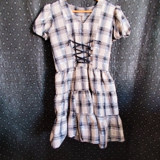 COD 0261 VESTIDO QUADRICULADO EM POLIESTER TAM P