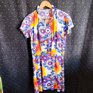 COD 0262 VESTIDO EM CREPE FLORAL COM ELASTICO NA CINTURA TAM M