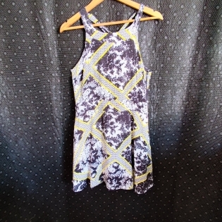 COD 0683 VESTIDO EM CREPE QUADRICULADO COM DETALHES BRILHO E ZIPER NAS COSTAS TAM M