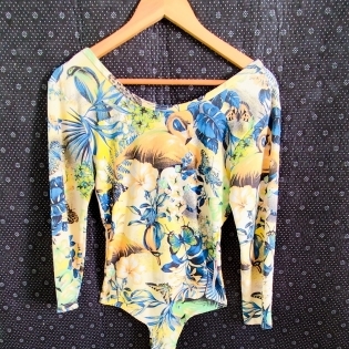 COD 0286 BODY EM MALHA FLORAL COSTAS ABERTAS TAM G