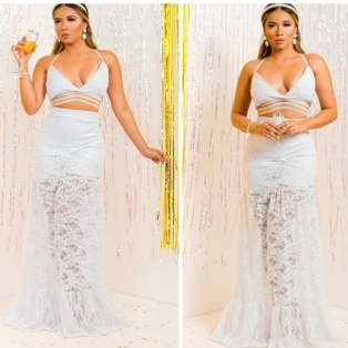 CONJUNTO SAIA SHORT CINTURA ALTA E CROPED EM BENGALINE E RENDA DETALHE ELASTICO DOURADO E ALCINHAS FINAS VESTE 40/42 BRANCO