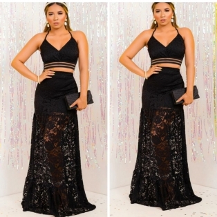 CONJUNTO SAIA SHORT CINTURA ALTA E CROPED EM BENGALINE E RENDA DETALHE ELASTICO DOURADO E ALCINHAS FINAS VESTE 40/42 PRETO COD