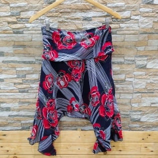 COD 0443 SAIA EM CREPE FLORAL ASSIMETRICA COM ZIPER NA LATERAL TAM 38