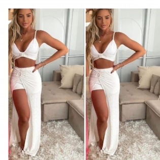COD 5494 CONJUNTO SHORT E CROPED FRENTE UNICA COM ELASTICO NAS COSTAS E APLICAÇÕES TAM M