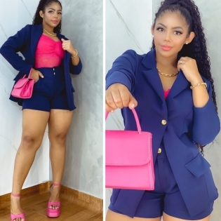 COD 4781 CONJUNTO SHORT E BLASER AZUL MARINHO TAM G