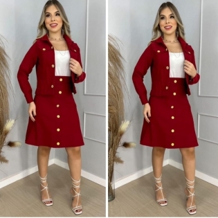 COD 4862 CONJUNTO SAIA E CASACO BENGALINE VINHO TAM G