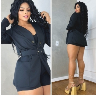 COD 5063 CONJUNTO BLAZER SHORT E CINTO PRETO TAM M